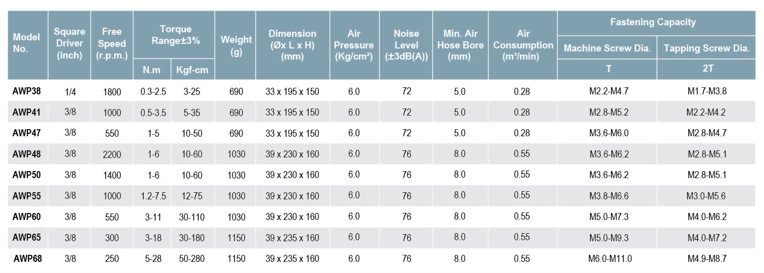 AWP38,AWP41,AWP47,AWP48,AWP50,AWP55,AWP60,AWP65,AWP68